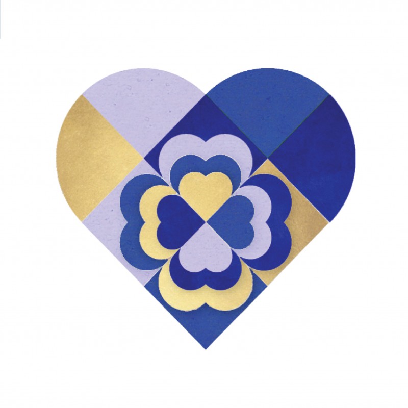 Colors: Blue velvet, purple, gold.